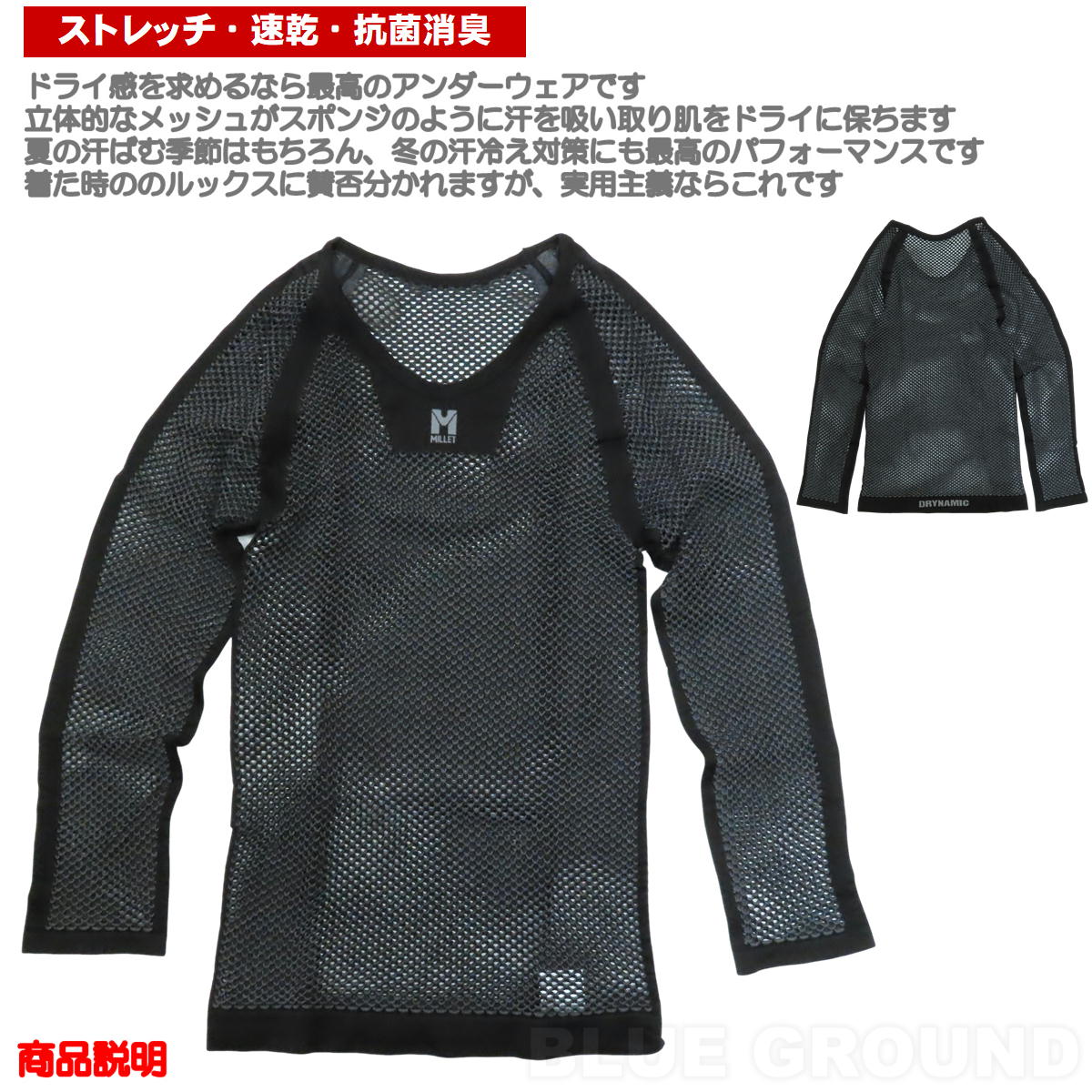 素材:DRYNAMIC MESH ポリプロピレン66% ナイロン28% ポリウレタン6%