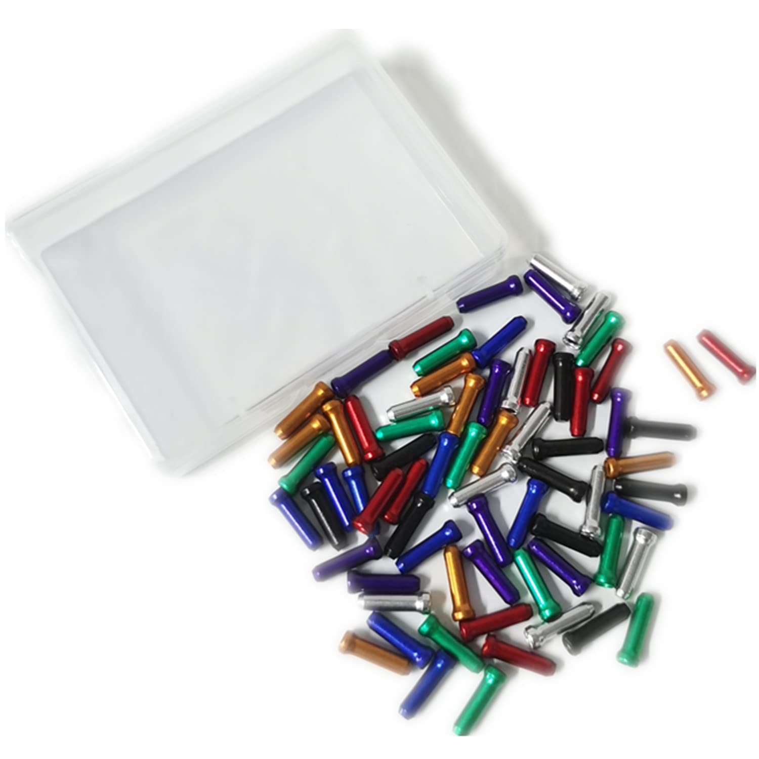 【十分な数量】これらのバイクケーブルエンドキャップは、黒、金、青、紫、緑、銀、赤の7つの魅力的な色があります。各色は10個あり、合計70個が小さなプラスチックの箱に保管されており、保管と使用が簡単です。