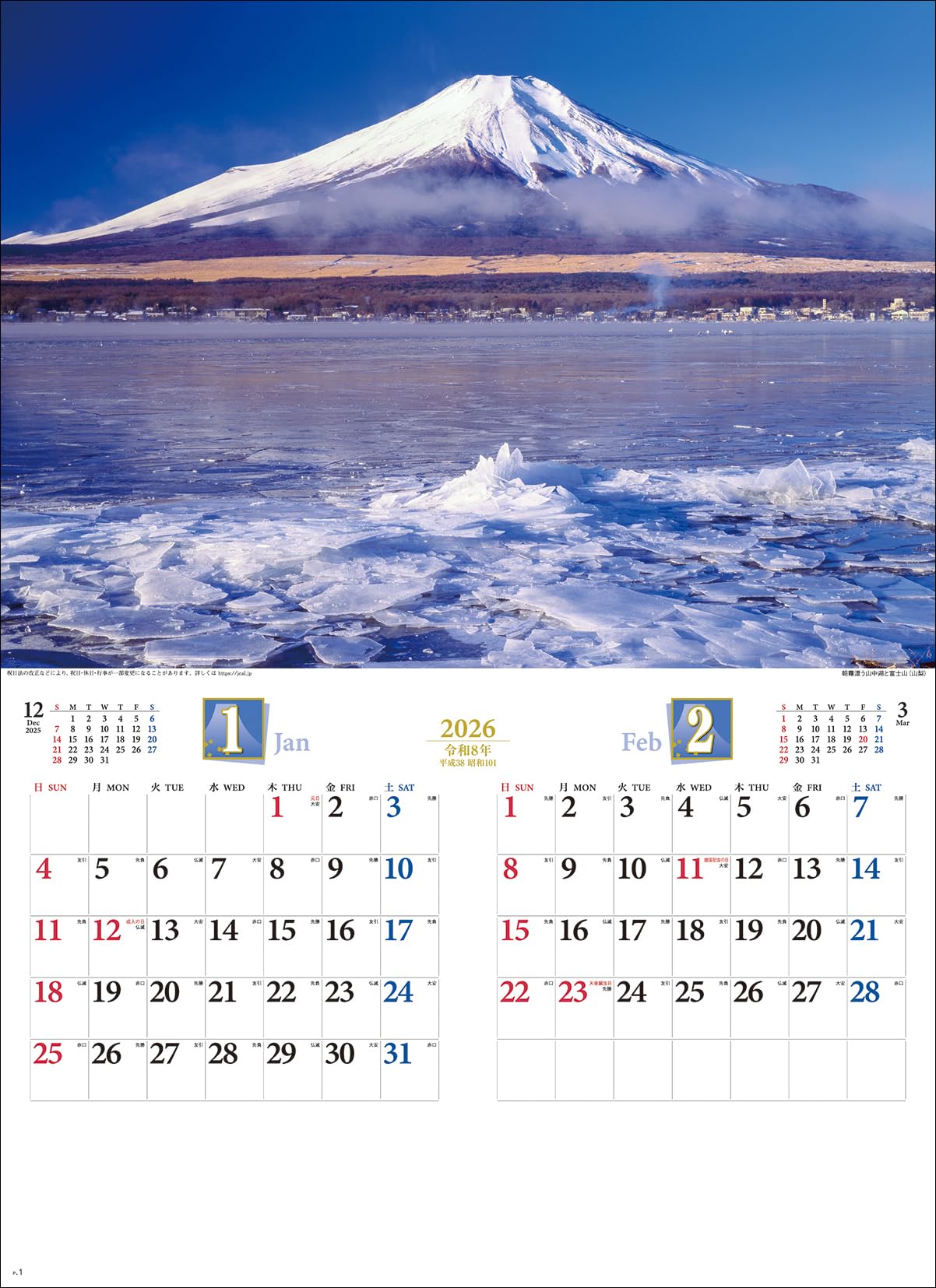 2026年1月始まり 壁掛カレンダー SG416 四季彩峰 2026年