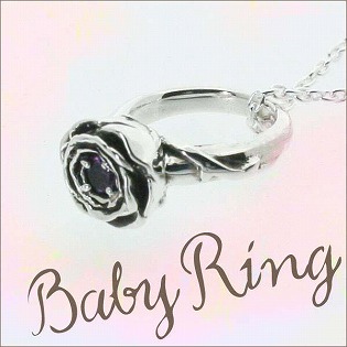 小さな小さなバラに誕生石をあしらったベビーリング。赤ちゃんの誕生の記念、お誕生日、結婚祝いもピッタリ。
