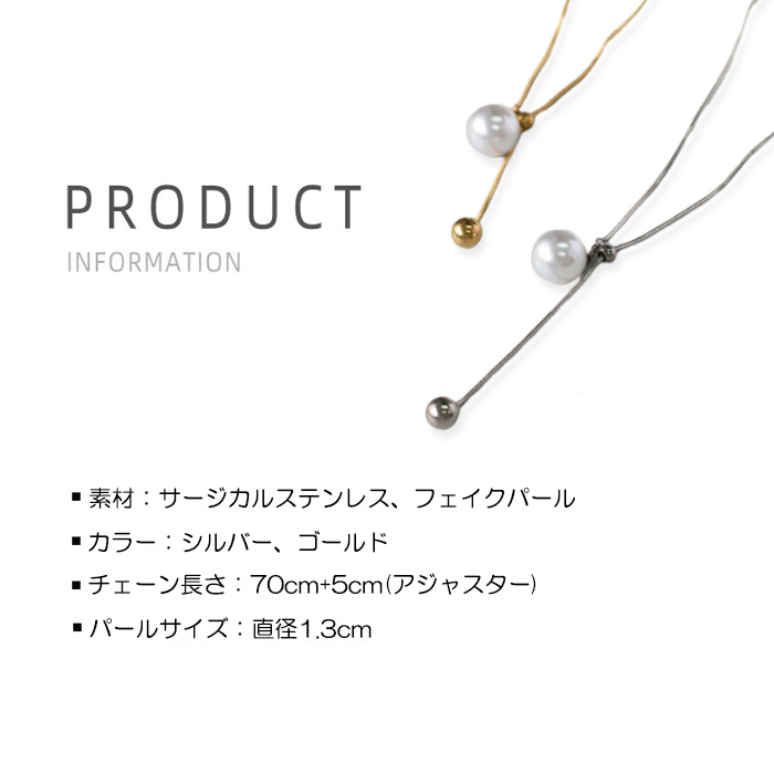 | サイズ | チェーン長さ:70cm+5cm(アジャスター)、 パールサイズ:直径1.3cm |