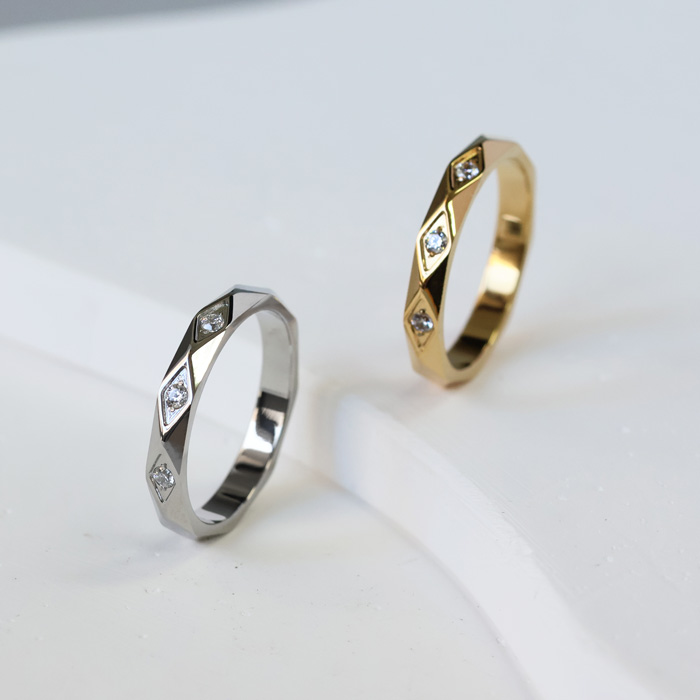 | 商品説明 | 変色しにくい、変形しにくい、傷が付けにくい、 金属アレルギーに強いサージカルステンレスの指輪です。 3粒のキュービックジルコニアをセットした上品なステンレスリング。角の取れた緩やかなダイヤモンドカットが高級感を演出します。 滑らかな着用感で安心安全のステンレス素材だからつけっぱなしでも◎ 日常使いからフォーマルな場面まで様々な場面で活躍してくれます。 |