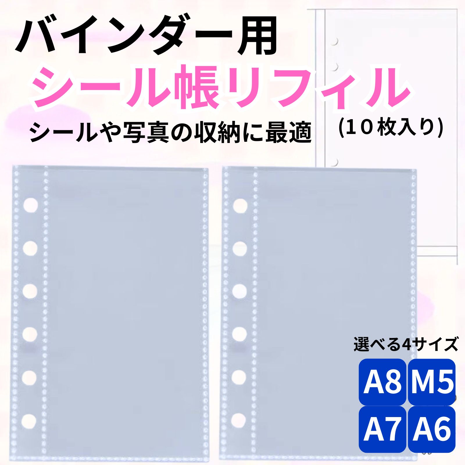 シール帳 リフィル 台紙 はがせる シート 透明 A7 A6 M5 A8 選べる4サイズ バインダー用 10枚入り