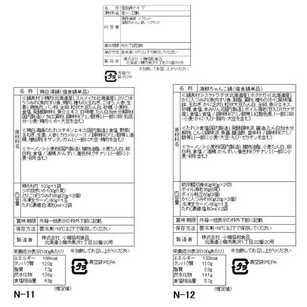 ■規格:個食用 鶏白湯鍋セット(鶏もも肉100g×1袋、ツボ抜きいか100g×1尾、とりごぼうつみれ20g×3個、冷凍生ラーメン80g×1玉、たれ(濃縮:白湯)50ml×2袋 ※約2人前)、海鮮ちゃんこ鍋セット(助宗鱈切身40g×2切、ボイル海老6g×6尾、ボイル帆立20g×3個、かに入つみれ20g×3個、冷凍生ラーメン80g×1玉、たれ(濃縮:塩)50ml×2袋 ※約2人前) ×各2