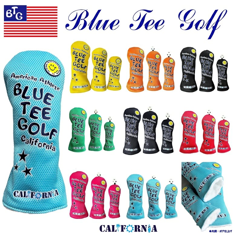 2023新製品 ブルーティーゴルフ【メッシュ スマイル】 キャットハンドヘッドカバー (MSHC-001) DR FW UT用 BLUE TEE GOLF