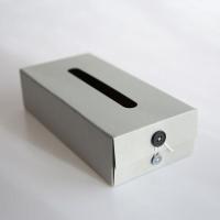 段ボール生地に2色のボタンが印象的なティッシュボックス。ボックスティッシュの中身をつめ替えてお使い頂くことができます。また市販のボックスティッシュで高さ6cmまでのものでしたら、ボックスごと入れてお使い頂くことも可能です。パッケージはシンプルな封筒のようなデザインですので、ギフトにも最適です。