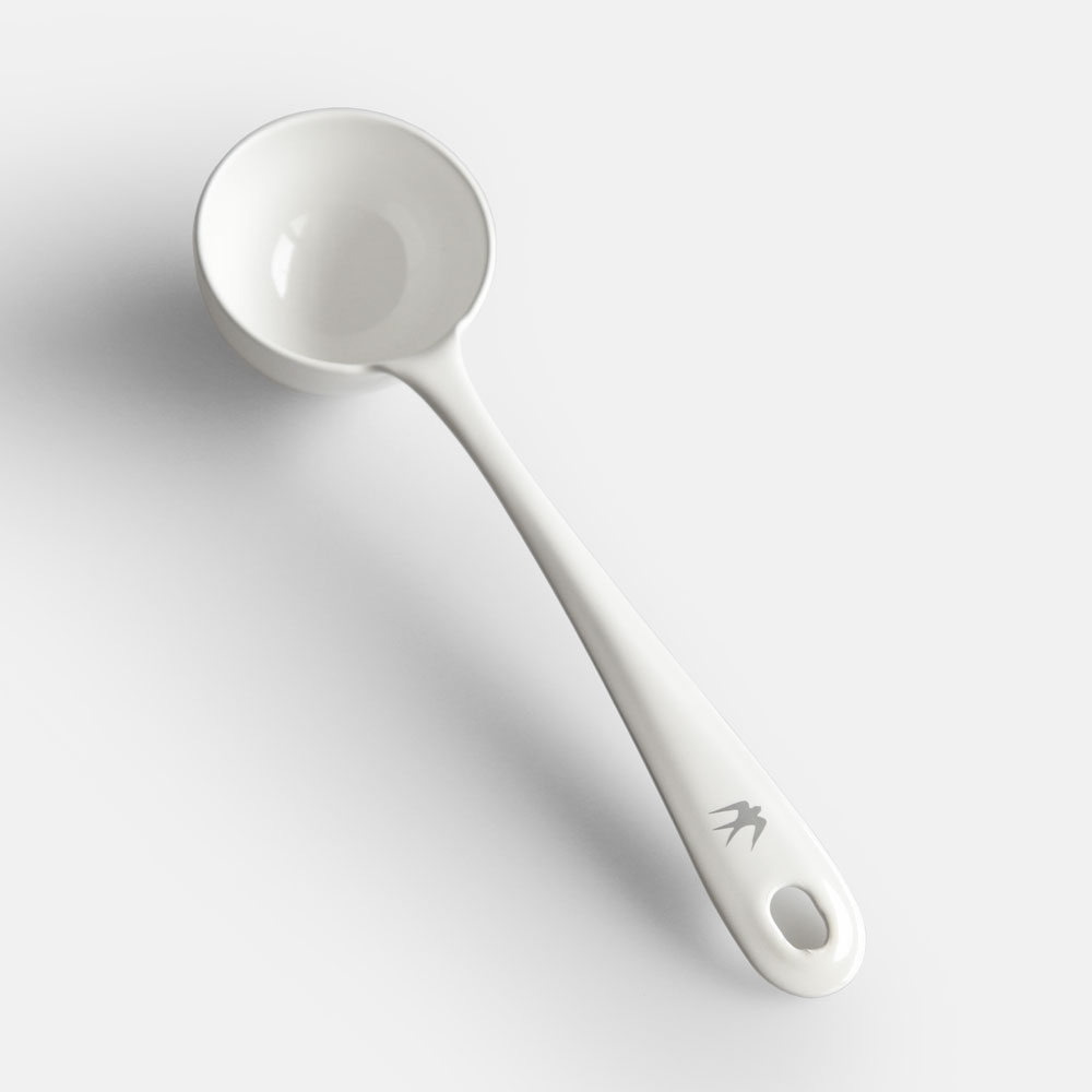 新潟県燕市の老舗琺瑯メーカーで制作される「ツバメ」シリーズのコーヒーメジャースプーン。琺瑯(ホーロー)はガラス質の釉薬を焼き付けたもので、金属の影響を受けにくい事で匂いがつきにくく、味質が変わらない特性をもっていることから、本楽の薫りと味覚を楽しむことができます。また、この琺瑯製品は一般的なスチール製ではなく、ステンレス材を使用しております。ステンレスの錆にくい特徴を活かし錆止め剤を使用せず、直接琺瑯を塗布することが出来ることから薄くて軽い仕上がりになっています。 ステンレス材の琺瑯製品が世界でも珍しいのはその工法の難しさからきており、仕上がるまでには繊細かつ緻密さを要求されます。