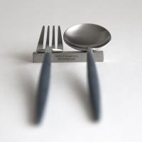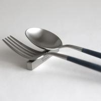 シンプルなステンレス製のカトラリーレストです。小さくブランド名と「NON UT EDAM VIVO. SED VIVAM EDO.」