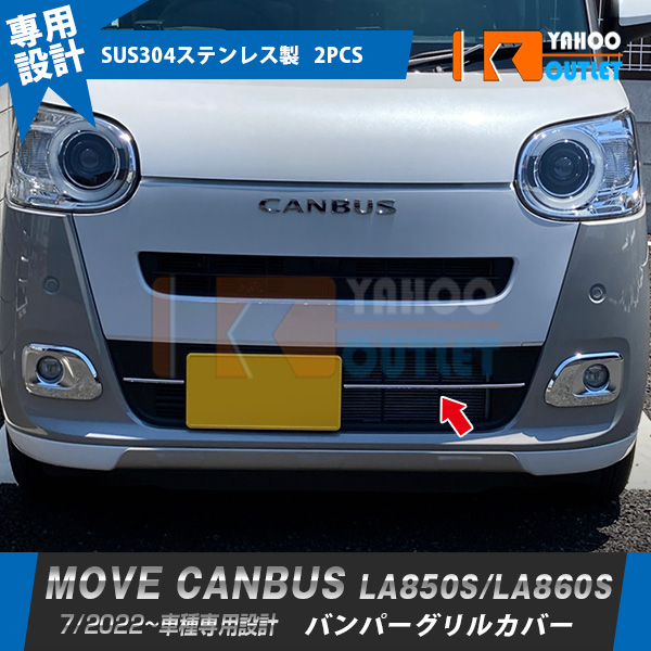 ダイハツ ムーヴキャンバス LA850S/LA860S 2022/7〜 フロントバンパーグリルカバー キズ予防 ステンレス製 鏡面 カスタムパーツ 外装 2P 6516
