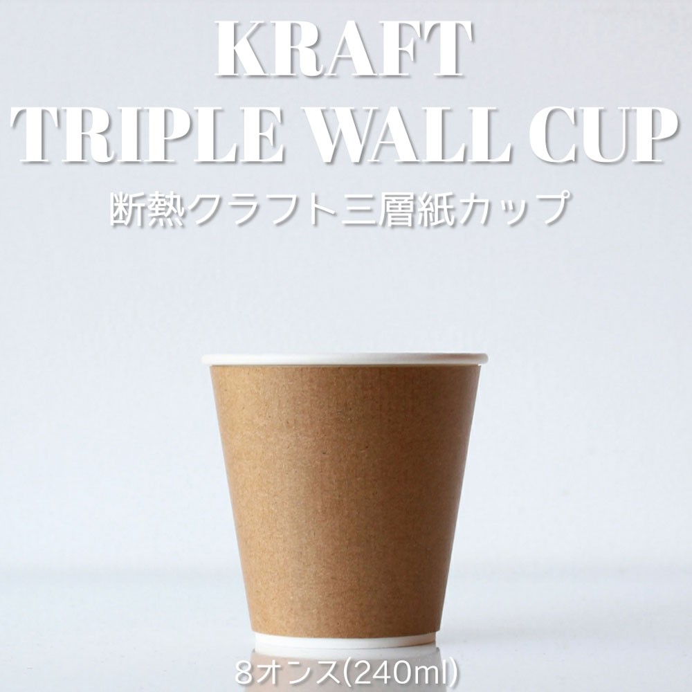 86mm口径 断熱クラフト 8オンス 三層紙カップ 1000個 テイクアウト お持ち帰り おしゃれ 紙コップ