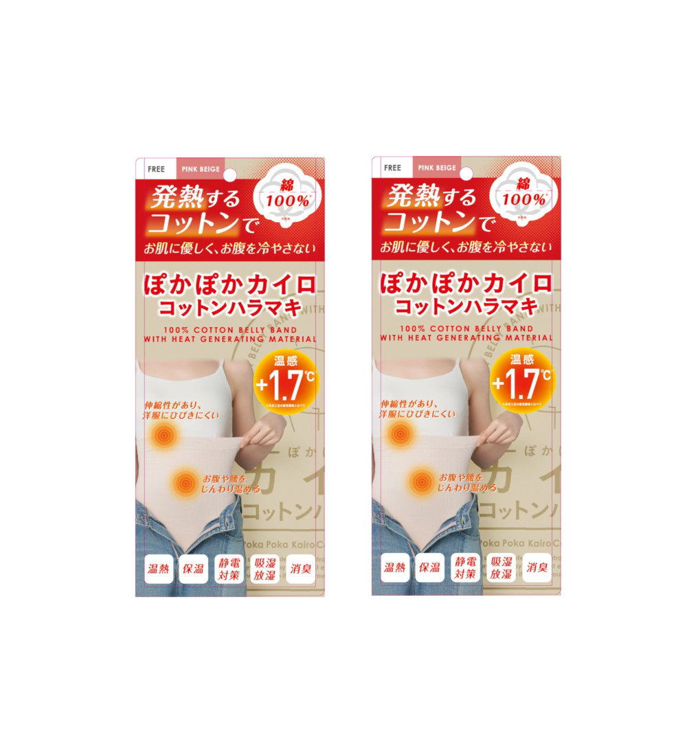 ぽかぽかカイロコットンハラマキ CO1 PINK BEIGE ピンクベージュ ×2【2個セット】送料無料 腹巻 はらまき おなか 冷え 綿100% コットン100% あったか
