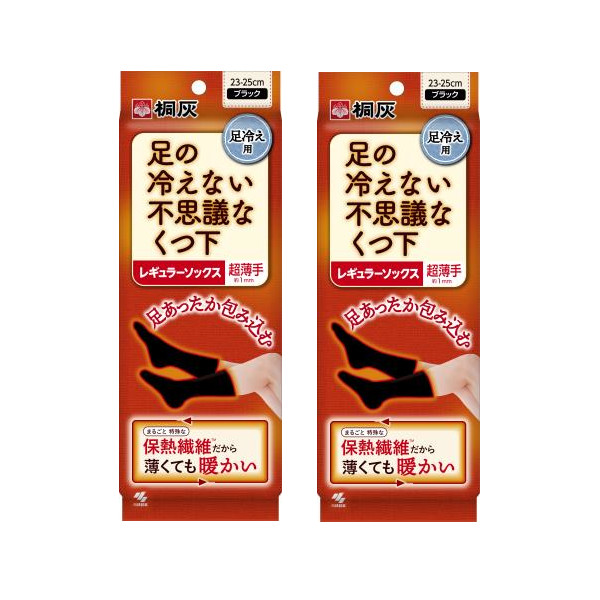 足の冷えない不思議なくつ下 レギュラーソックス 超薄手 ブラック 23-25cm ×2【2個セット】【ネコポス】桐灰 冷え 靴下 あったか