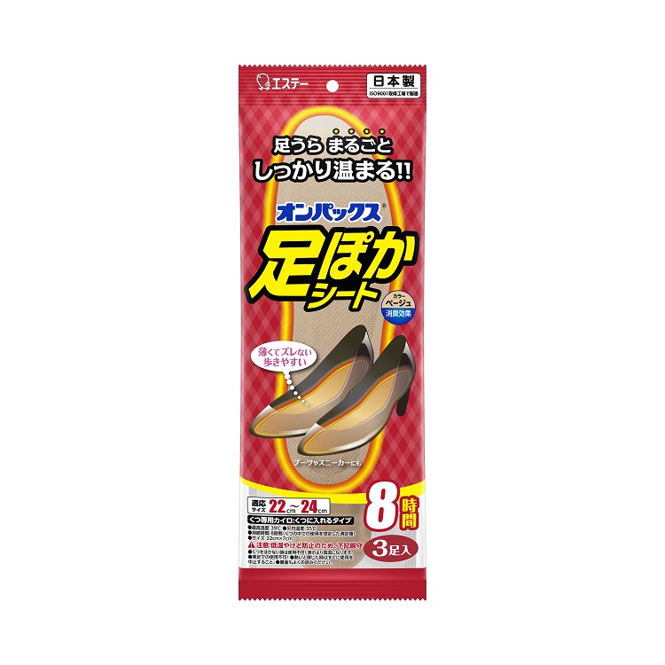 エステー オンパックス 足ぽかシート 22cm〜24cm ベージュ (3足入り) 1個【ネコポス】送料無料 靴用 足元 足先カイロ 冷え