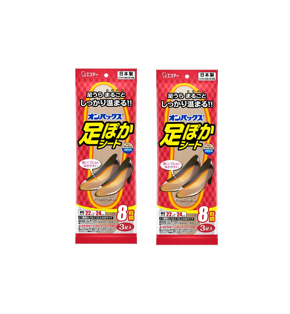 エステー オンパックス 足ぽかシート 22cm〜24cm ベージュ (3足入り) ×2【2個セット】【ネコポス】送料無料 靴用 足元 足先カイロ 冷え
