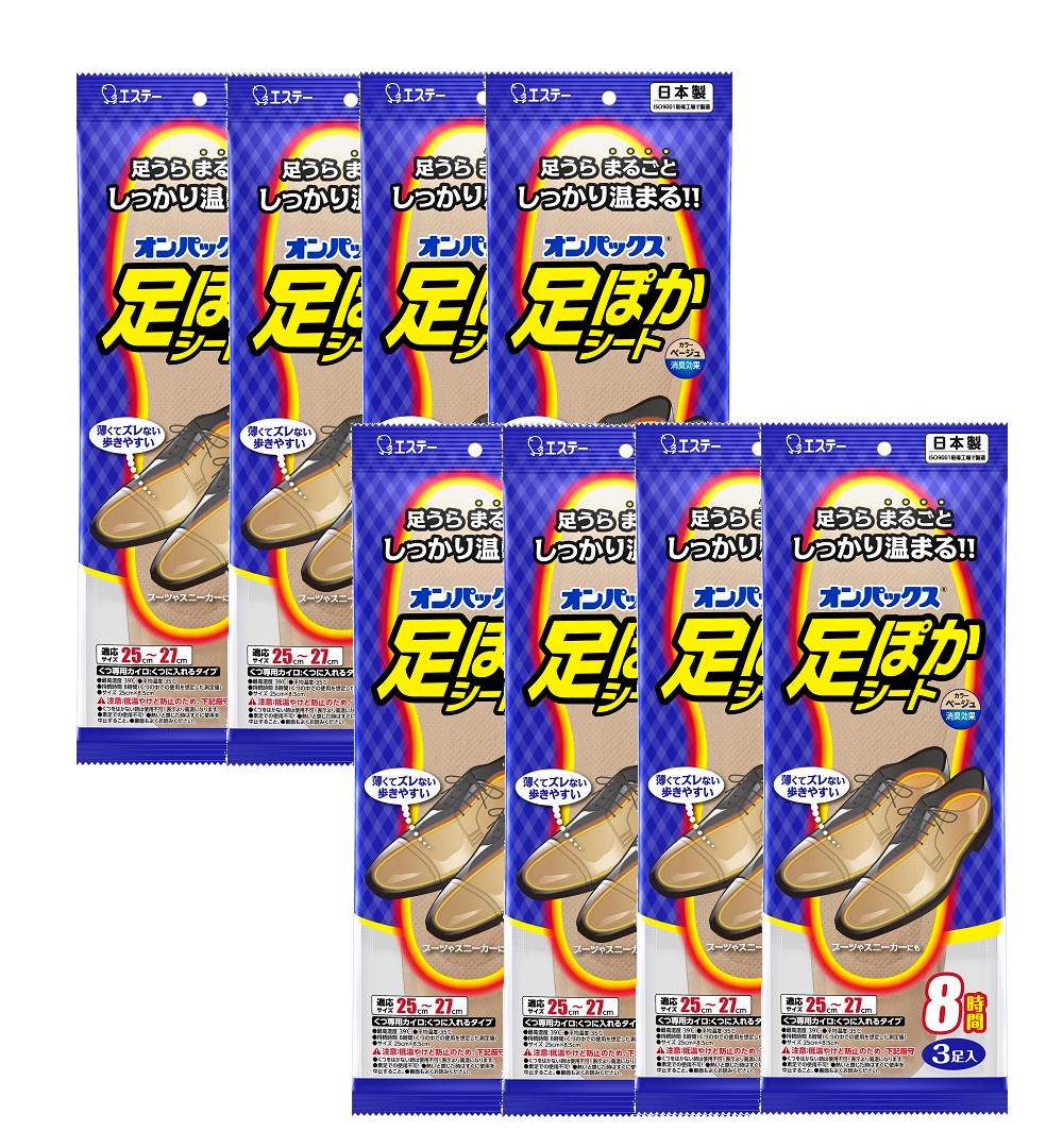 エステー オンパックス 足ぽかシート 25cm〜27cm ベージュ (3足入り) ×8【8個セット】送料無料 靴用 足元 足先カイロ 冷え