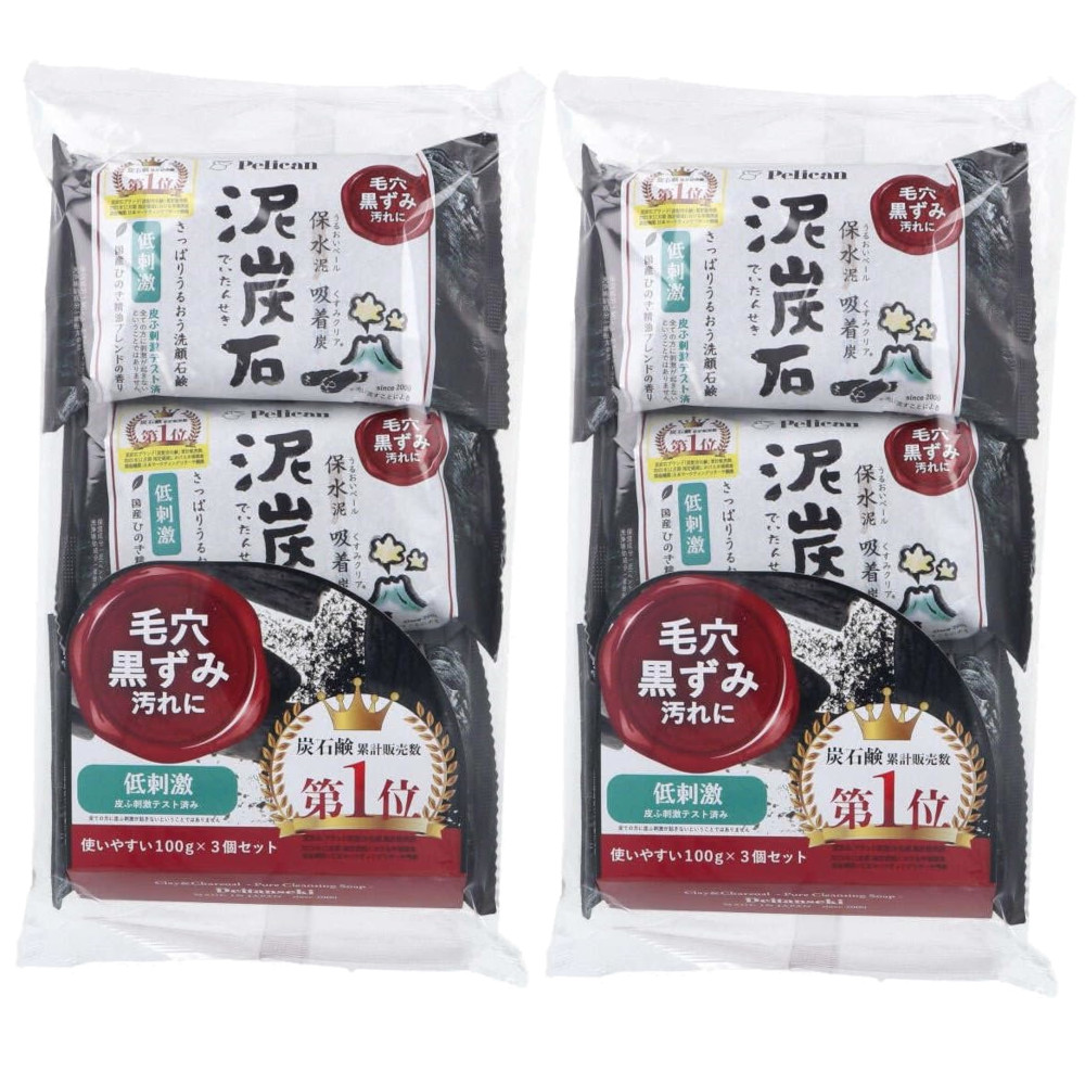 ペリカン石鹸 泥炭石 洗顔石鹸 100g×3個入×2【2個セット】【ネコポス】送料無料 せっけん 炭石鹸