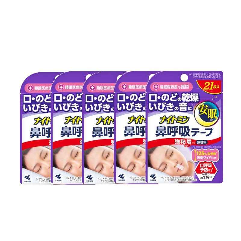 ナイトミン 鼻呼吸テープ 強粘着 タイプ 21枚入り×5【5個セット】【ネコポス】送料無料 いびき防止 いびき対策 口呼吸