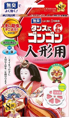 効き目長持ち1年間有効の人形用防虫剤。