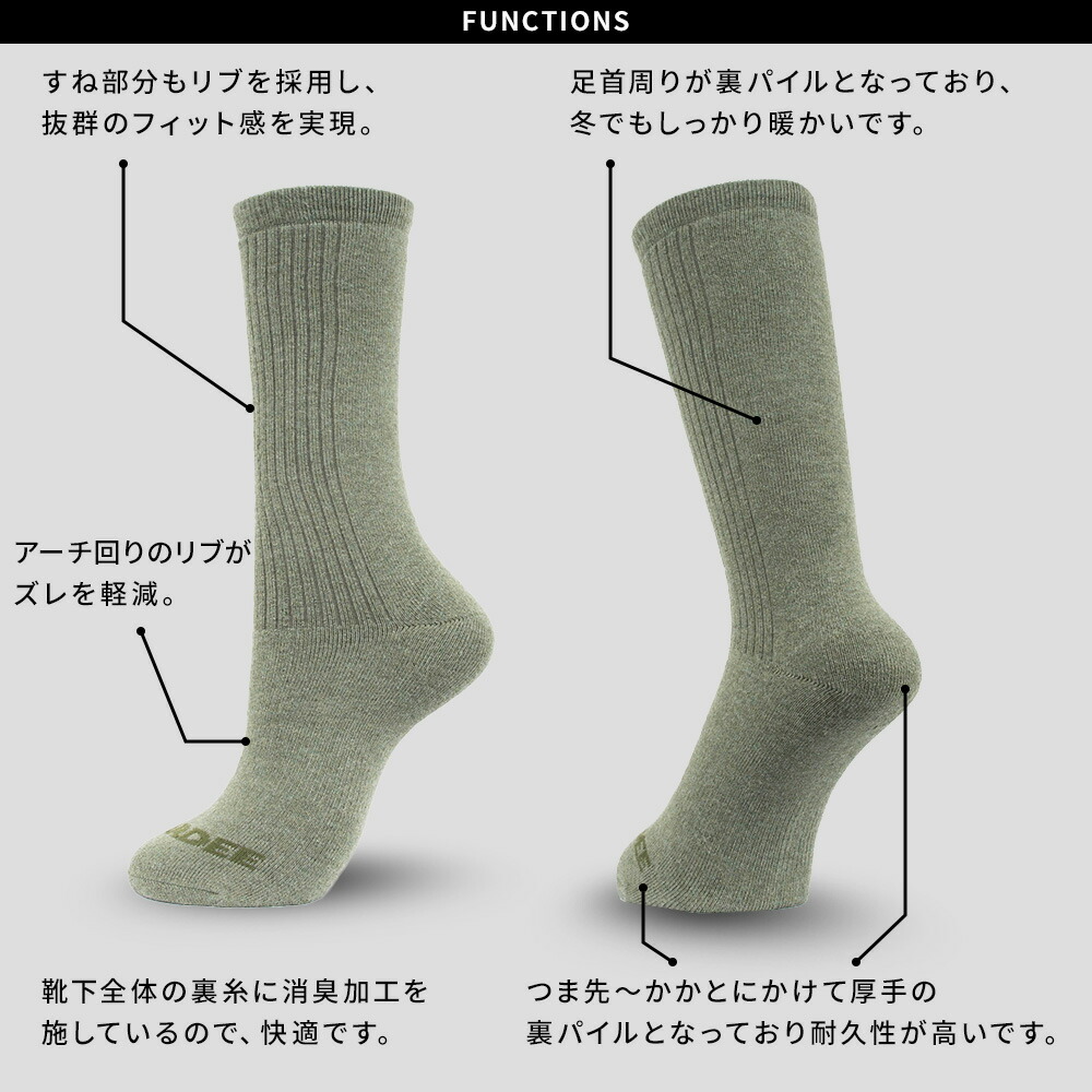消臭糸:特殊な消臭糸を使用することで、汗や臭いの発生を抑え、清潔で快適な状態を長時間保ちます。