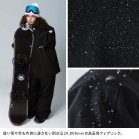 ウエストベルトや調整可能な裾パウダーガードがあり、雪の侵入を防ぎつつ快適なスノーボードを楽しむことができます。