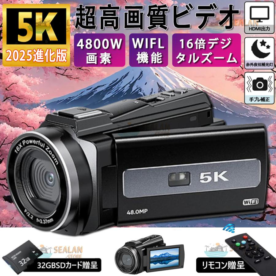 【限定セール】 ビデオカメラ デジカメ 4K 5K DVビデオカメラ 4800万画素 デジタルビデオカメラ 日本製センサー 4800W撮影ピクセル 16倍デジタルズーム 赤外夜視