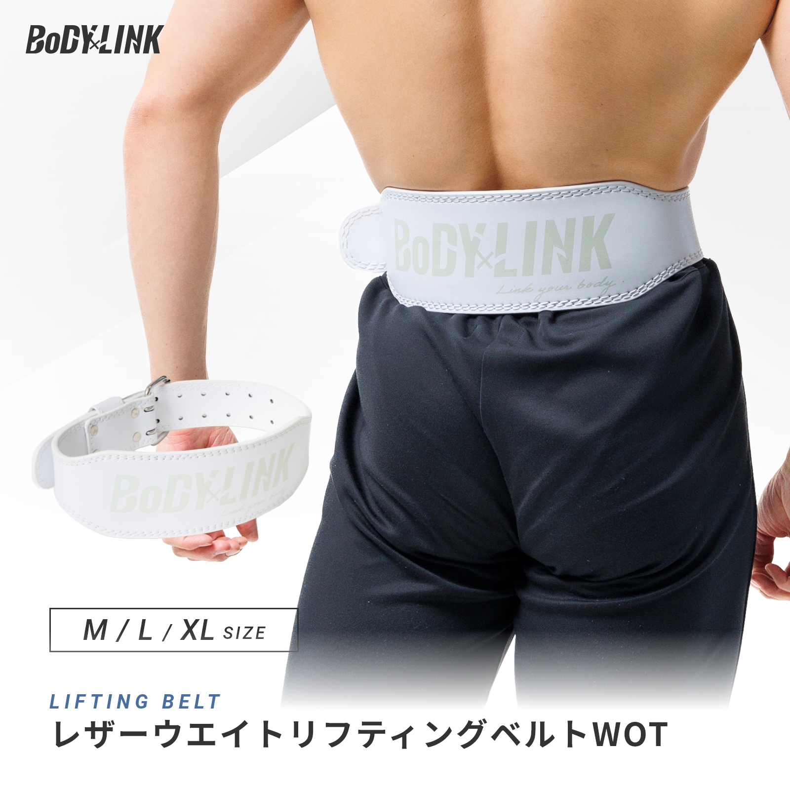 リフティングベルト パワーベルト トレーニングベルト 筋トレ ベルト ホワイト 本革 レザー 男女兼用 RK-LB-W BoDYLINK (ボディリンク)