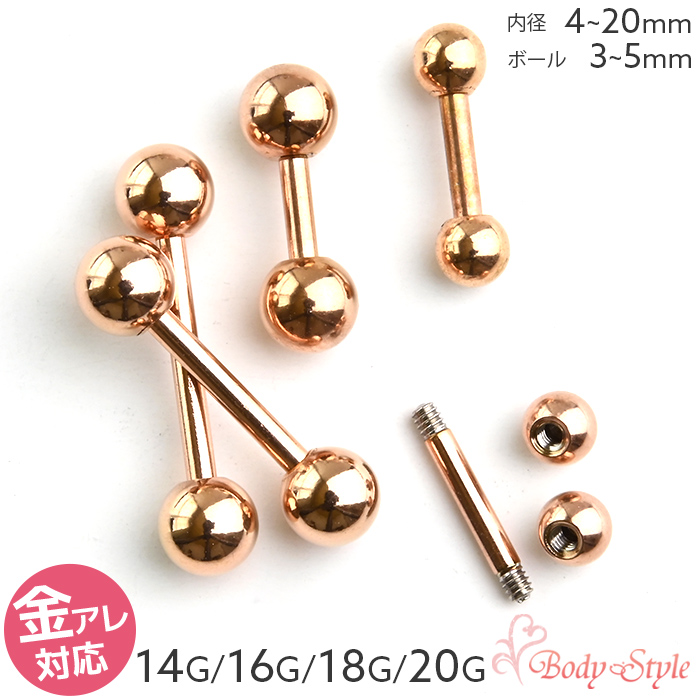ボディピアス バーベル 14G 16G 18G 20G ボール ピンクゴールド 金属アレ対応 ステンレス 軟骨ピアス 耳用 トラガス ヘリックス