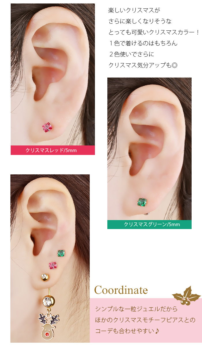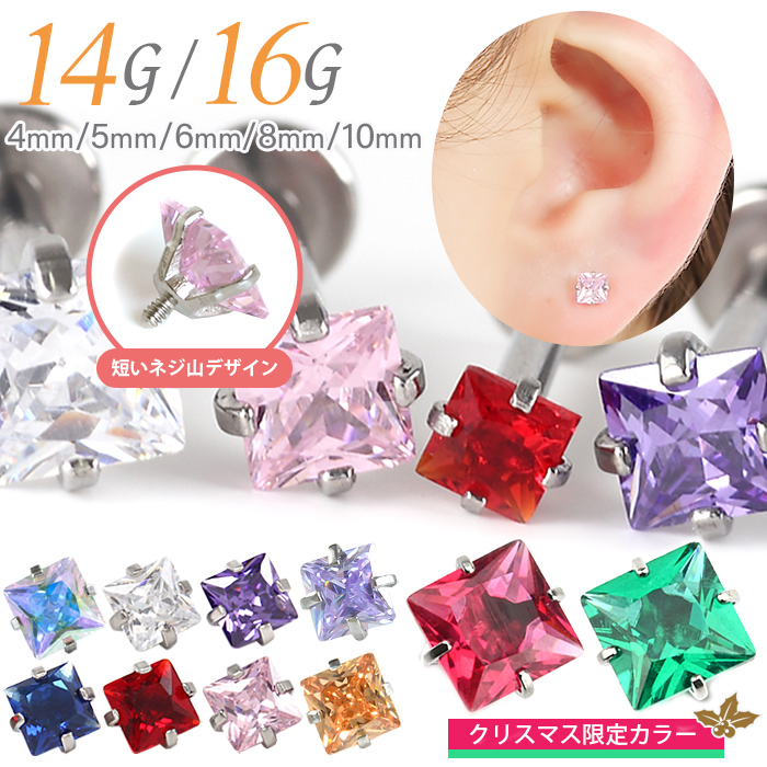 クリスマス限定カラー入荷 高評価 4.5点 ボディピアス ラブレット 16G 14G 四角 スクエア ジュエル 立爪 金属アレ対応 ステンレス 立爪ジュエルシリーズ