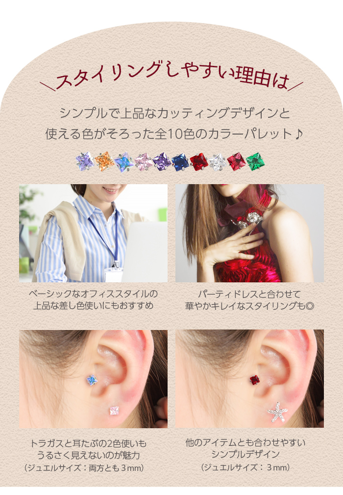 ラブレットスタッド 四角 スクエア シンプル トラガス 軟骨ピアス ヘリックス 金属アレルギー対応 ボディピアス ボディピ 仕事用 小さい 極小 厚い 16G 14G 16ゲージ 14ゲージ ラブレットスタッド 四角 スクエア 立爪 ジュエル トラガス 軟骨ピアス ヘリックス 耳たぶ かわいい レディーズ メンズ ビジュー