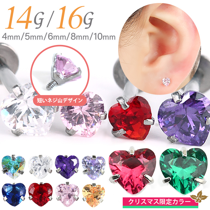 クリスマス限定カラー入荷 ボディピアス ラブレット 16G 14G ハート ジュエル 立爪 金属アレ対応 ステンレス 立爪ジュエルシリーズ