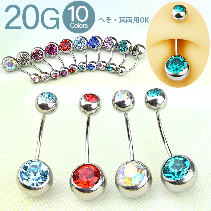 シンプルなシルバーをベースカラーに、キラキラ輝くジュエルが映える大人気の定番バナナバーベルピアスです。