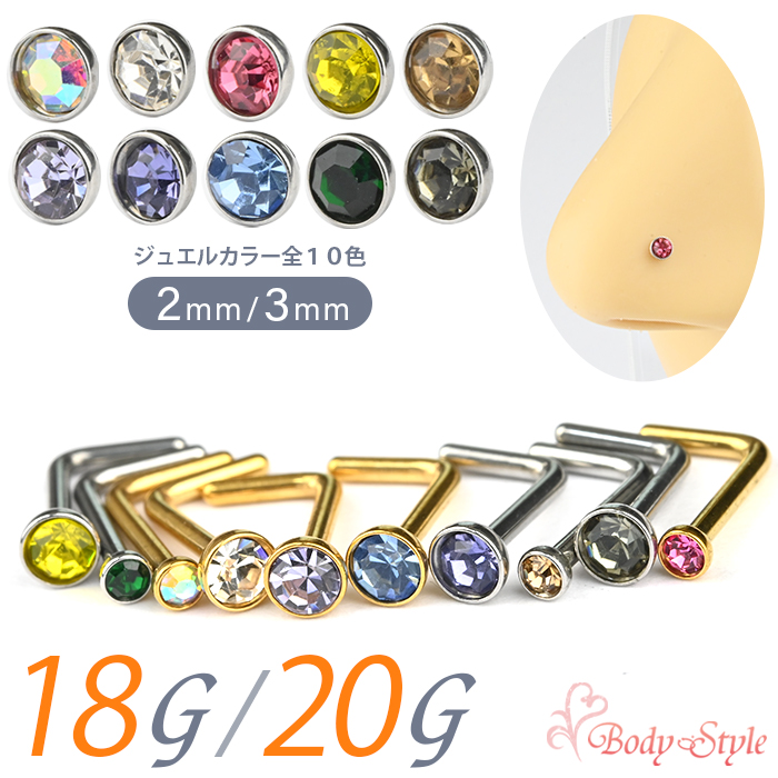 ボディピアス 鼻ピアス 20G 18G スタッド ジュエル 金属アレルギー対応 サージカルステンレス 鼻ピ ノーズピアス ノストリルストレート