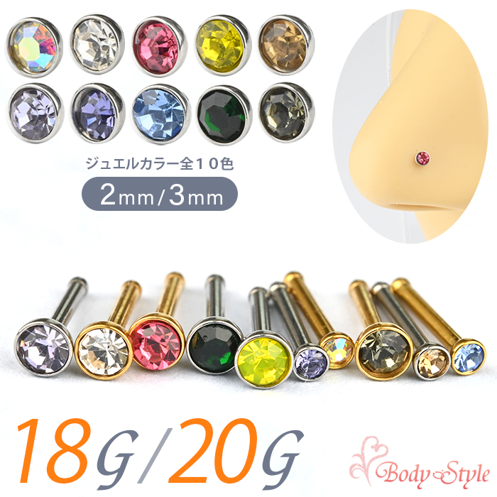 ボディピアス 鼻ピアス 20G 18G スタッド ジュエル 10色 金属アレルギー対応 サージカルステンレス 鼻ピ ノーズピアス ノストリル