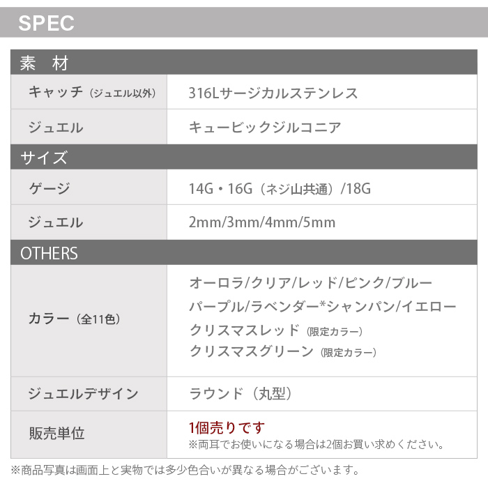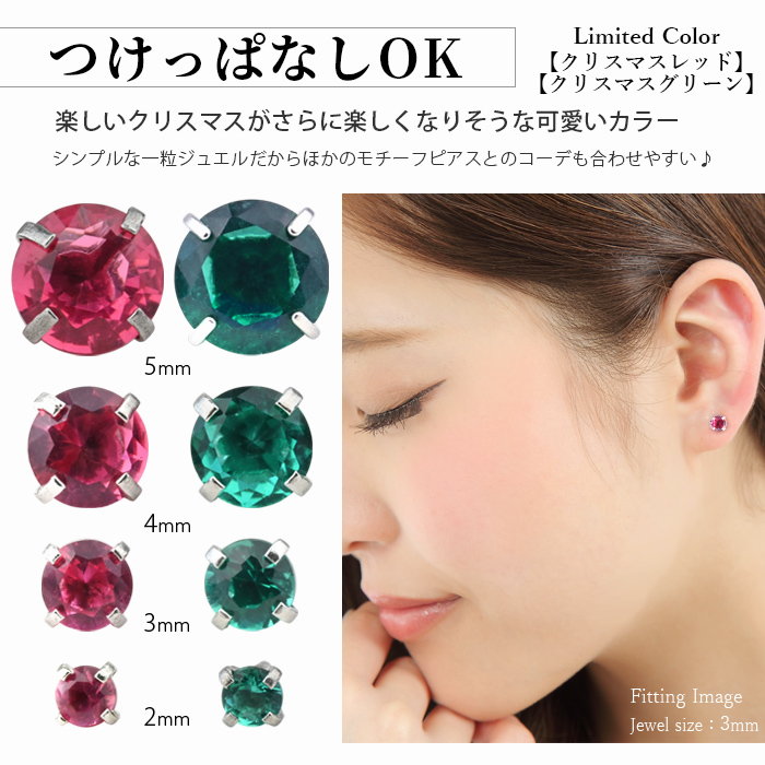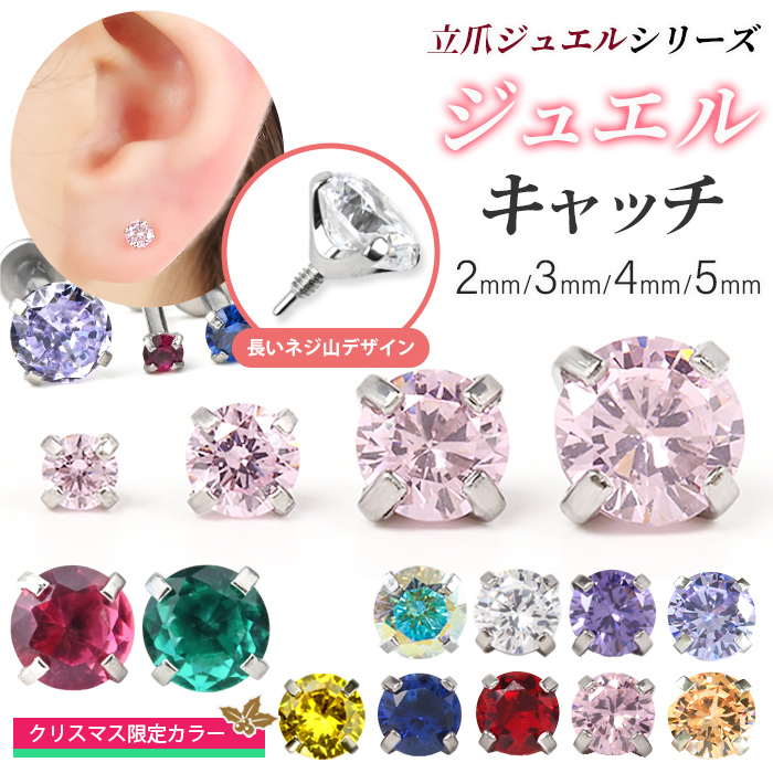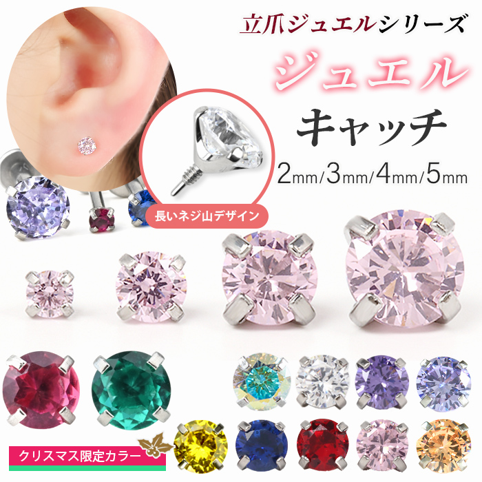 クリスマス限定カラー入荷 ボディピアス 立爪ジュエル専用 キャッチのみ カスタマイズ パーツ 2mm 3mm 4mm 5mm ラウンド 金属アレ対応 ステンレス