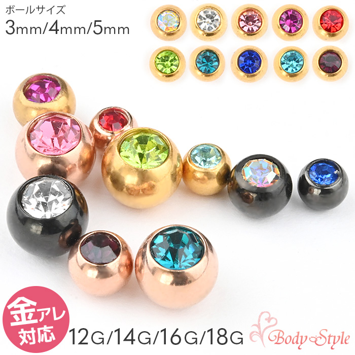 ピアス キャッチ ボール ボディピアス 14g 16g 18g ジュエル パーツ カスタマイズ ピンクゴールド ねじ式 耳ピアス 金属アレルギー対応 キャッチのみ