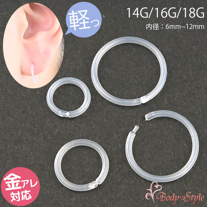 透明ピアス 透ピ 目立ちにくい リングピアス フープピアス 14G 16G 18G 軟骨ピアス 耳用 トラガス ヘリックス シークレットピアス 学校 職場