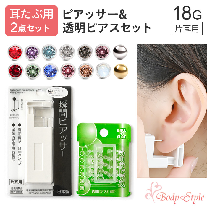片耳用ピアッサー1個と透明ピアス1個の2点セット【ピアッサー】
