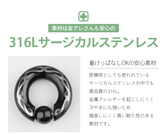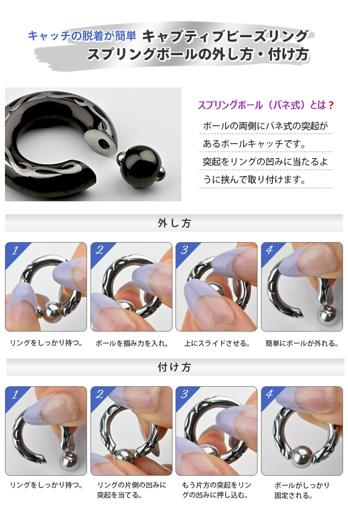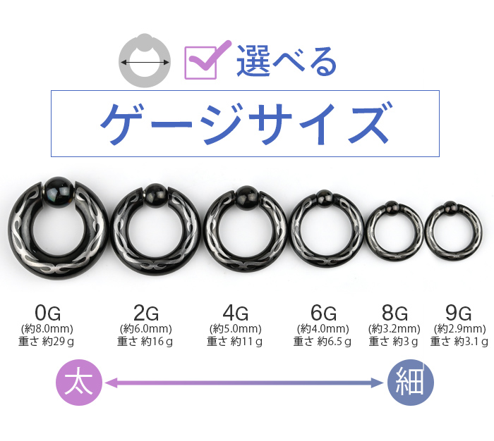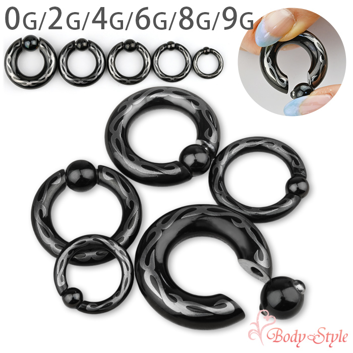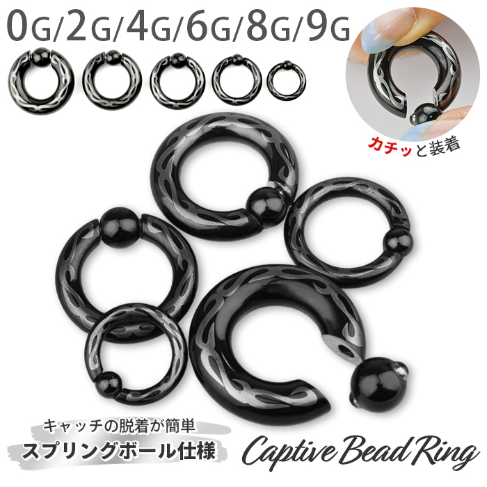 ボディピアス 0G 2G 4G 6G 8G 9G 拡張 キャプティブリング ビーズリング スプリングボール ラージホール ラージゲージ ブラック 耳たぶ イヤーロブ メンズ レディース 金属アレルギー対応 医療用ステンレス トンネル ばね式 トライバル ボディスタイル body style body-style ボディ スタイル ぼでぃすたいる