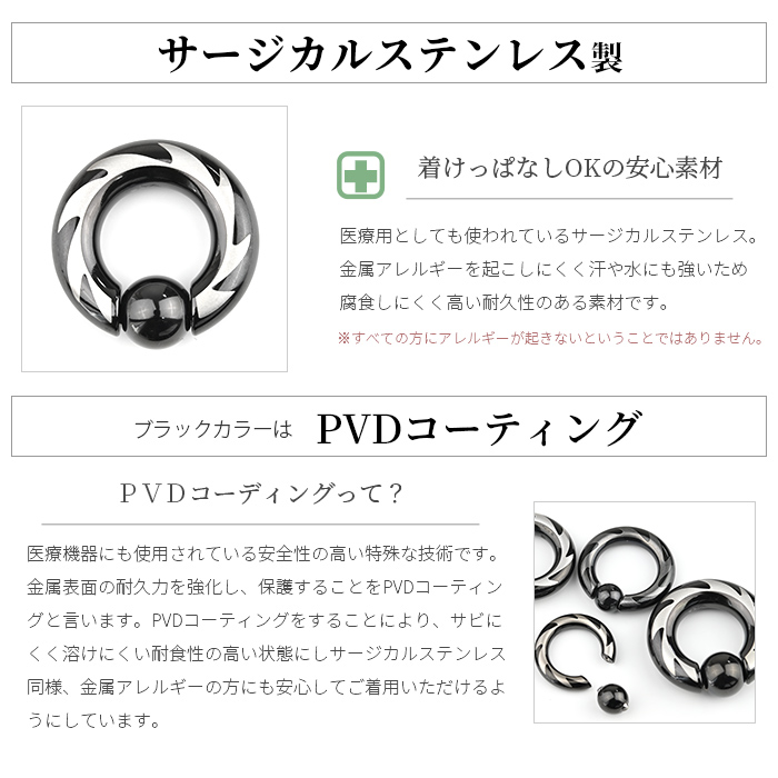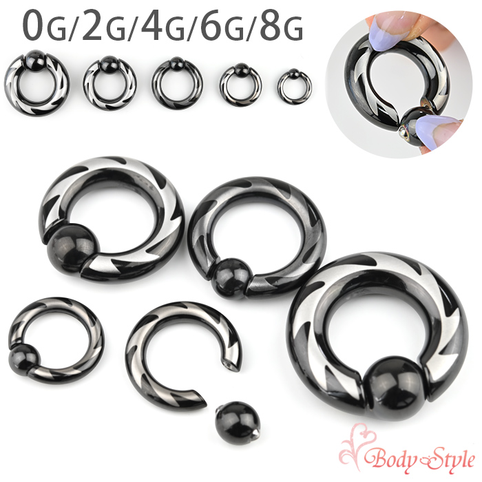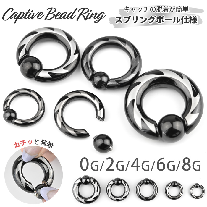 ボディピアス 0G 2G 4G 6G 8G 拡張 キャプティブリング ビーズリング スプリングボール ラージホール ラージゲージ ブラック 耳たぶ イヤーロブ メンズ レディース 金属アレルギー対応 医療用ステンレス トンネル ばね式 トライバル ボディスタイル body style body-style ボディ スタイル ぼでぃすたいる