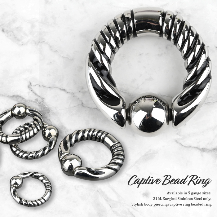 ボディピアス 0G 2G 4G 6G 8G シルバー 縄目 拡張 キャプティブビーズリング スプリングボール バネ式 片耳用 金属アレ対応 ステンレス