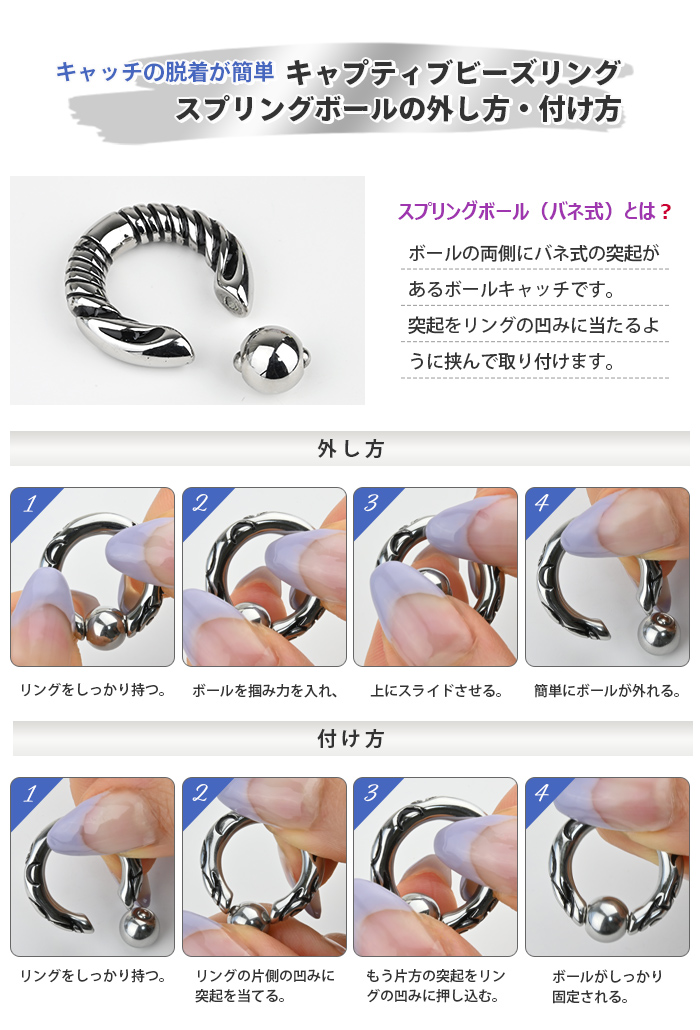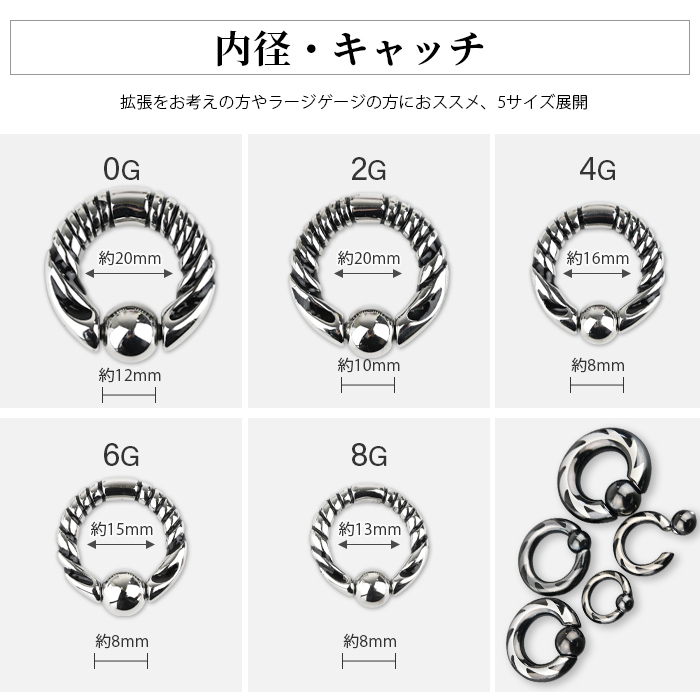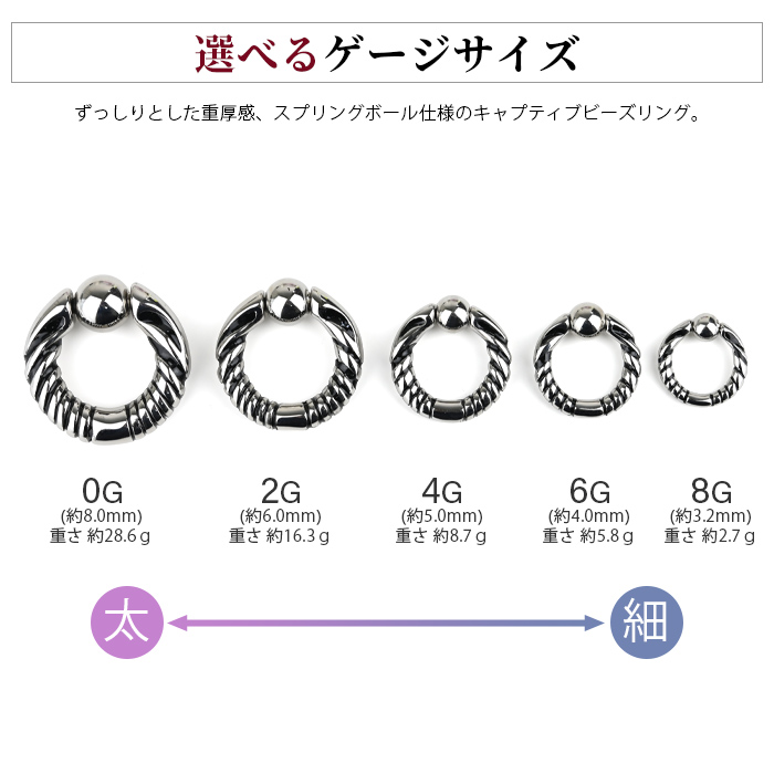 ボディピアス 0G 2G 4G 6G 8G 拡張 キャプティブリング ビーズリング スプリングボール ラージホール ラージゲージ シルバー 耳たぶ イヤーロブ メンズ レディース 金属アレルギー対応 医療用ステンレス トンネル ばね式 トライバル ボディスタイル body style body-style ボディ スタイル ぼでぃすたいる