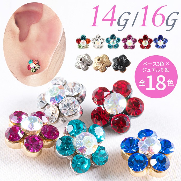 フラワー キャッチ ボディピアス パーツ トラガス 14g 16g ねじ式 カスタマイズ ネジ式 金属アレルギー対応 耳たぶ 軟骨用 軟骨ピアス 耳用 ロブ キャッチのみ 花 シルバー ゴールド ブラック ポップ マルチカラー クリア エメラルド ピンク レッド ブルー カラフル 可愛い かわいい カワイイ 緑 グリーン 青 赤 ステンレス レディース