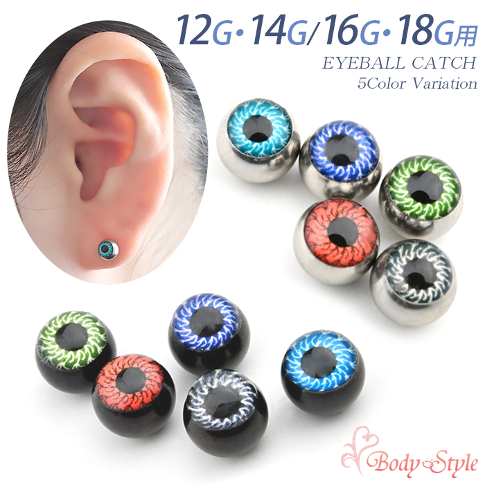 目玉 キャッチ ボディピアス パーツ トラガス 12g 14g 16g 18g ねじ式 カスタマイズ ネジ式 金属アレルギー対応 耳たぶ 軟骨用 軟骨ピアス 耳用 ロブ キャッチのみ レディース メンズ ユニセックス カワイイ キュート 楽しい オレンジ ブルー パープル 紫 青 グリーン 緑 グレー クール カッコイイ 男女兼用 銀