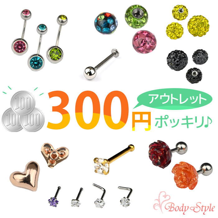 ボディピアス アウトレット 300円ポッキリ 300円均一 14G 16G 20G 金属アレルギー対応 ラブレット バーベル 軟骨 耳 へそ キャッチ
