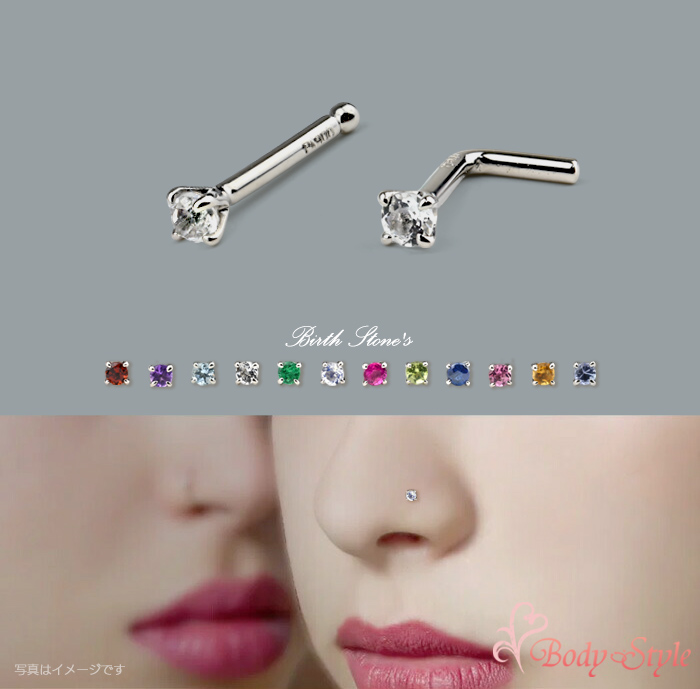 【誕生石とタイプを選べるPt900プラチナオーダー鼻ピアス】<br>
