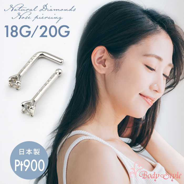 Made in Tokyo プラチナ pt900 鼻ピアス ボディピアス 18g 20g スクリュー スタッド 天然ダイヤモンド 金属アレ対応 日本製