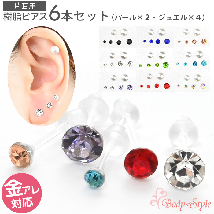 ピアス 樹脂ピアス 6個セット 20G ジュエル 2mm 3mm 4mm 5mm パール 6mm 8mm 樹脂ポスト金属アレルギー対応 小さい 極小