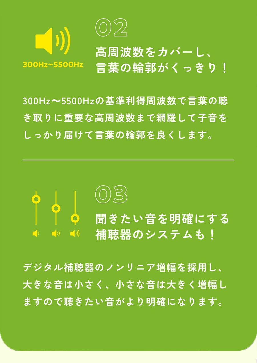 | 適用周波数範囲 | 300Hz〜5500Hz |