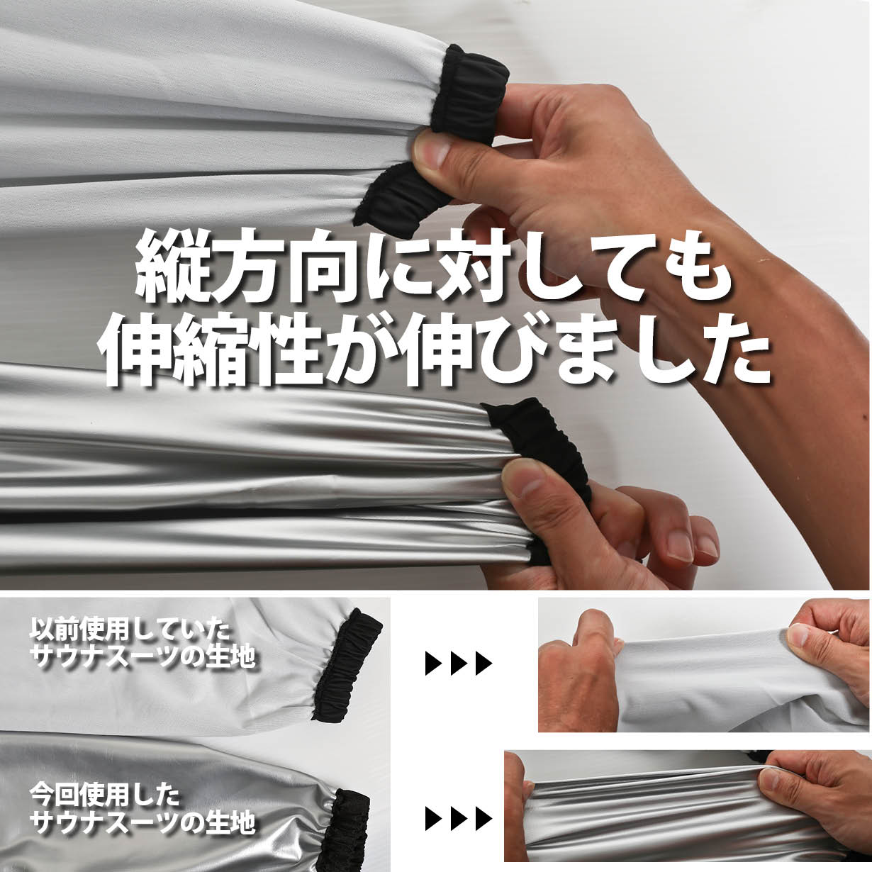 BODYMAKERのサウナスーツはストレッチ性にもこだわり、この【BURN-SUIT】は従来のものと比べ、生地の織り方を工夫しこれまでの2方向に対するストレッチが4方向にストレッチするように改良され、さらに動きやすい仕様となっております。