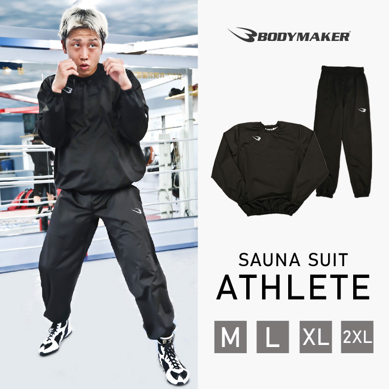 柔らかなストレッチ性のあるポリエステル素材にポリウレタンコーティングを施した素材。高い密閉性。首、袖口のゴム仕様による「短時間で大量発汗」でアスリートの減量や女性のダイエットに人気のサウナスーツです。「抗菌・防臭機能」が加わり、汗による臭いの原因となる菌の繁殖を抑止。衛生面での不安を取り除きました。プリントは反射プリント(リフレクター)を採用。夜間・着用者の安全をサポートします。